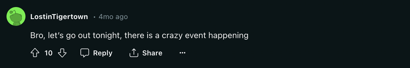 7:31 pm — A short blonde girl in her 20s asks if she can have the window seat. She’s wearing AirPod Max headphones, New Balance collab sneakers, and a matching set from Sporty & Rich. Despite my distaste for Sporty & Rich, I realize this walking Scaries post will be a good seat mate. We look at each other with the shared knowledge that we’re in this together.